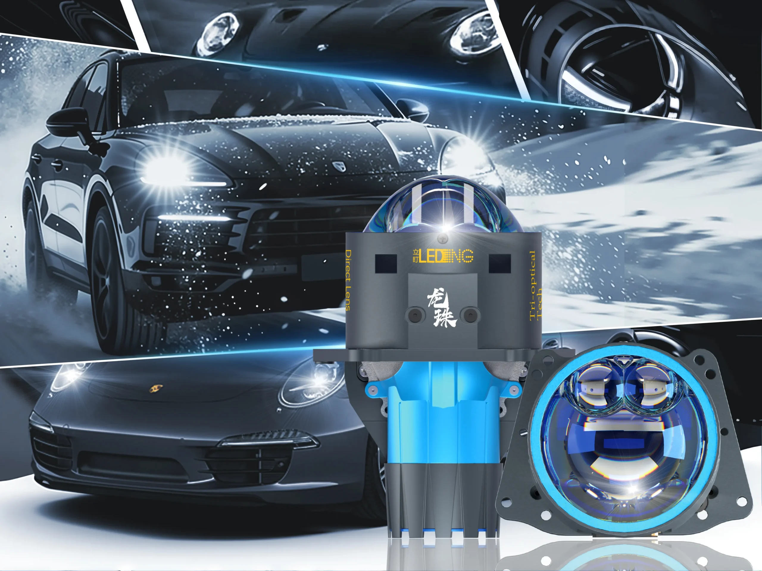 From reflective and direct-project LED lenses to laser lenses, bi-matrix and single-matrix modules, fog modules, and AFS systems — our full range meets diverse automotive retrofit needs.