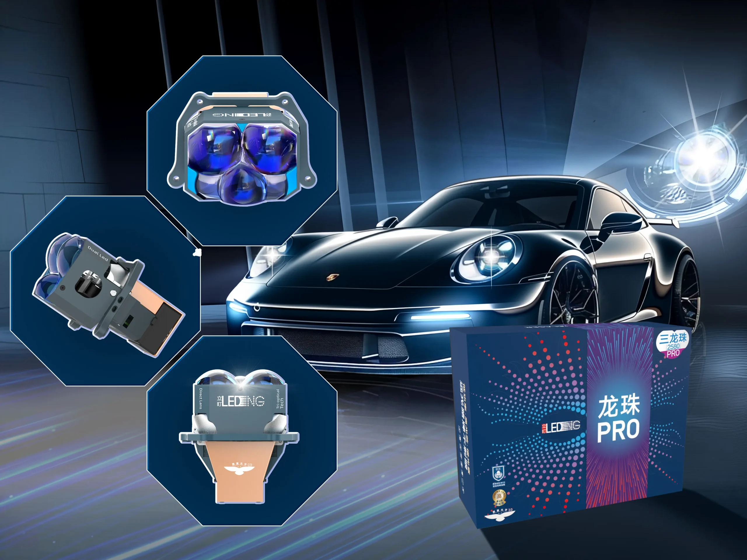 Our 5th-generation HLE “Pengyi” optics deliver superior road illumination while reducing glare and wasted light. Fully ECE-R113 compliant, our low-power lenses achieve brightness levels that surpass many high-power products.